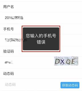 注意事项:(1)补充说明在步骤2里输入的手机号是已经绑定的手机号。如果未绑定手机号,点击按钮“下一步”时系统会提示(提示信息“您输入的手机号码错误”),如下图所示: